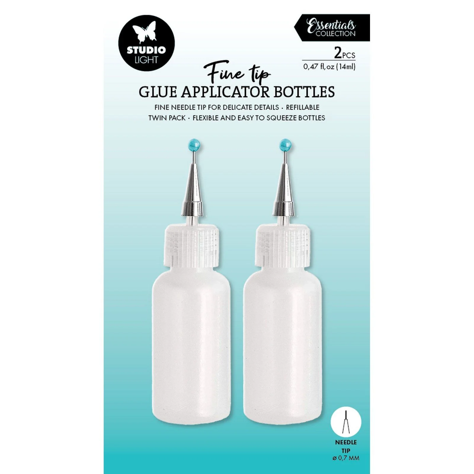 Aplikator Vaessen Creative plastikowa buteleczka z ultracienką końcówką jest idealny do precyzyjnego nakładania kleju, farby i innych płynów. Jedno opakowanie zawiera dwie butelki wraz z końcówkami igłowymi. Plastikowe butelki mieszczą 14 ml. Butelka z aplikatorem lub dzióbkiem to podstawowe narzędzie hobbystyczne wykorzystywane do robienia kartek, scrapbookingu i innych papierowych prac ręcznych. Precyzyjna końcówka zamykana jest silikonową nakładką, która ma na celu zapobieganie zasychaniu mediów w bardzo cienkiej rurce.