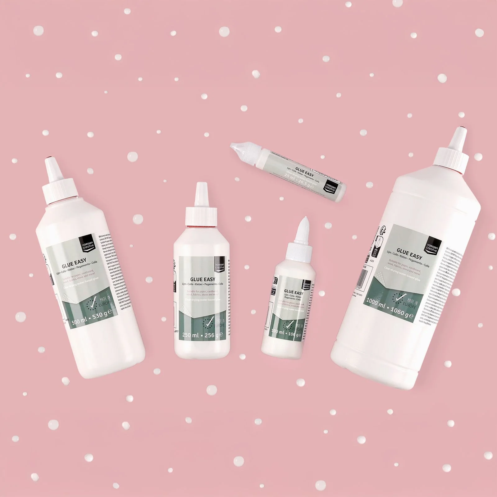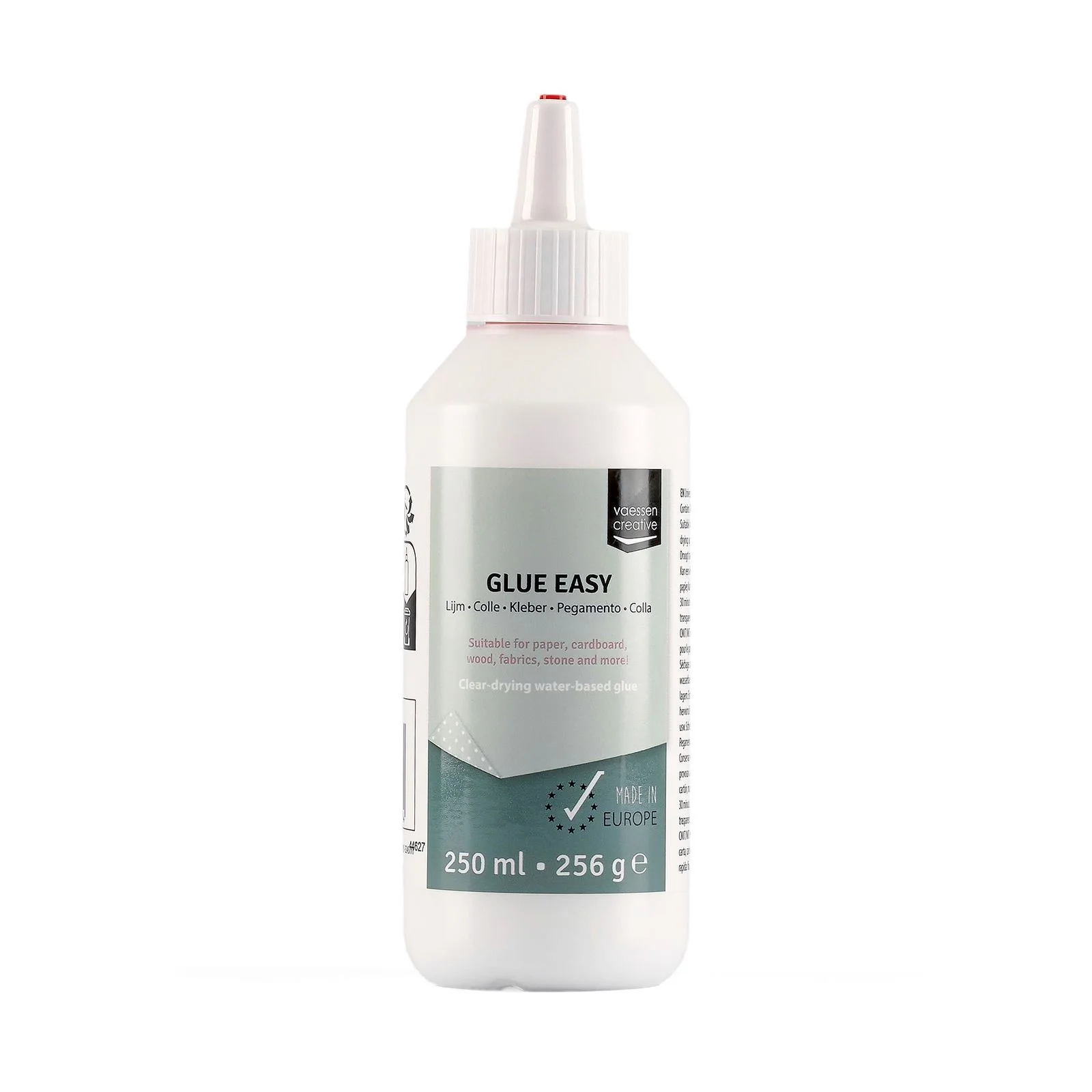 Vaessen Creative glue easy clear drying glue - klei szybko bez konieczności przytrzymywania klejonych elementów. Po wyschnięciu jest przeźroczysty i elastyczny. Klej do każdego typu powierzchni. Doskonały do papieru i ozdób, można nim przyklejać również tkaniny (nie przesiąka).