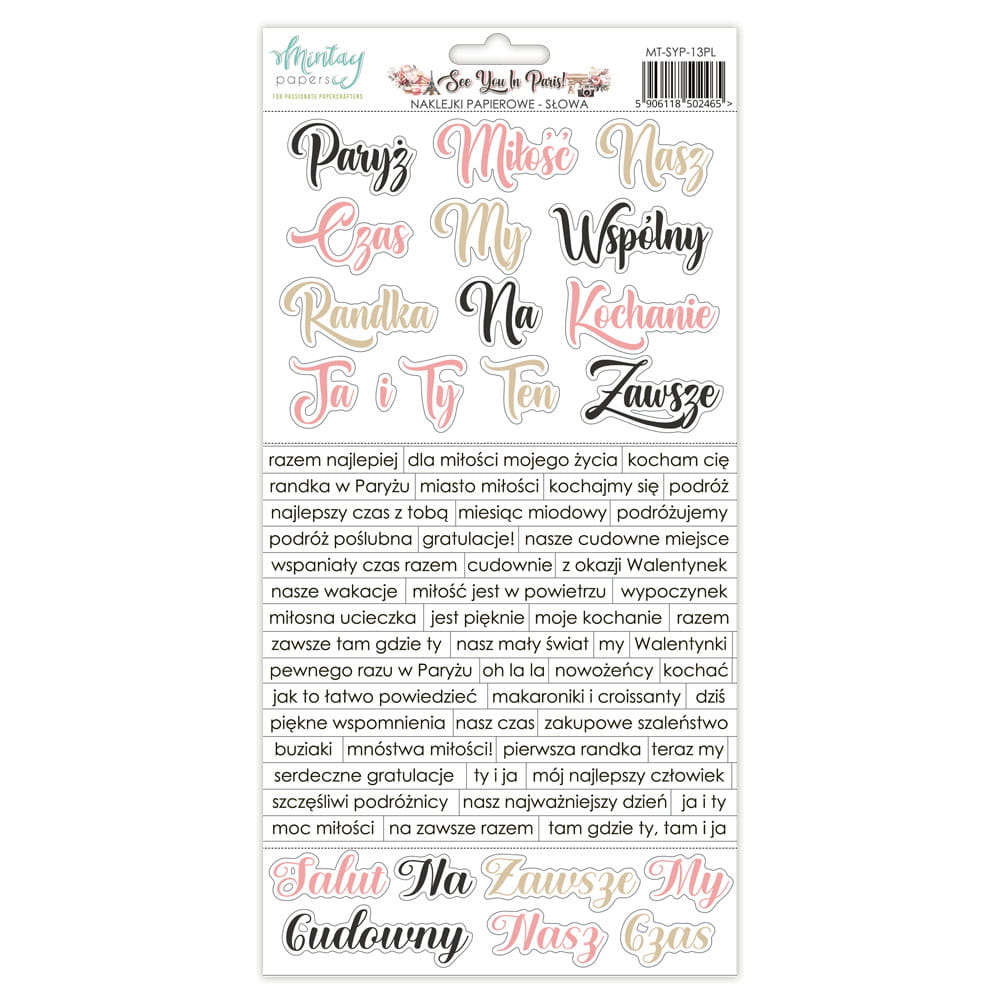 naklejki papierowe Mintay Papers - see you in Paris - słowa PL