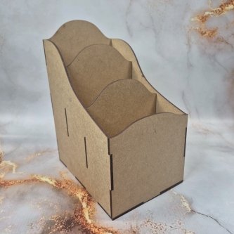 Organizer do samodzielnego złożenia. Najlepiej sklejać klejem stolarskim. Elementy HDF o grubości 3mm. Doskonałe do prac wykonywanych techniką mixed media. Odpowiednie do barwienia farbami, tuszami i innymi mediami. Wykorzystywane w scrapbookingu oraz decoupage.
