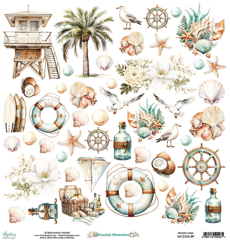 papier scrapbook Mintay Papers - coastal memories - arkusz z elementami