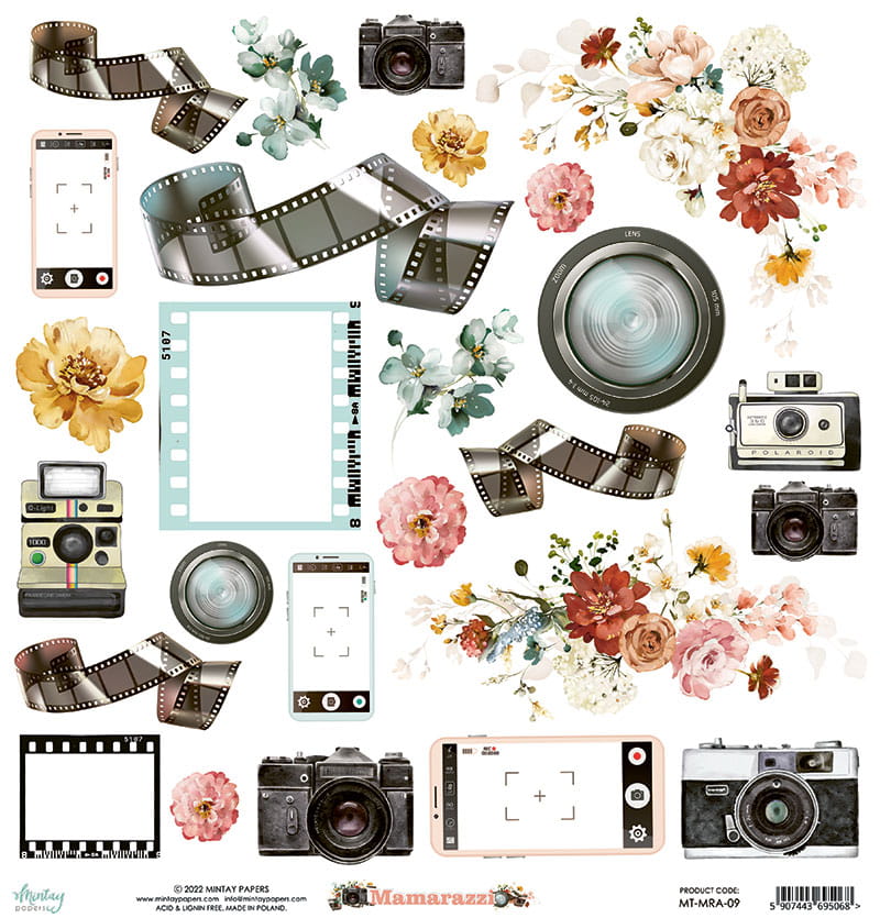 papier scrapbook Mintay Papers - mamarazzi - arkusz z elementami