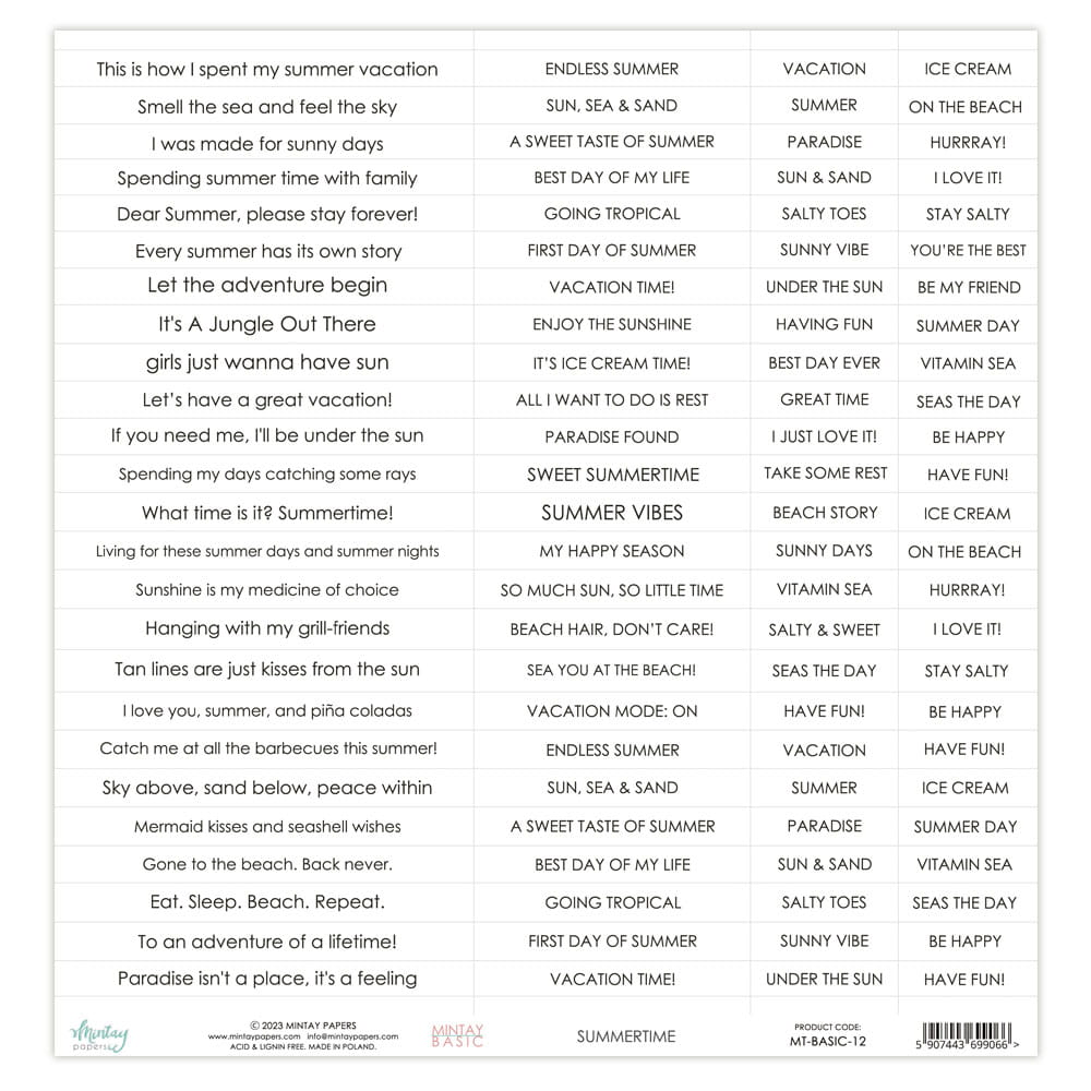 papier scrapbook Mintay Papers - napisy Summertime ANG