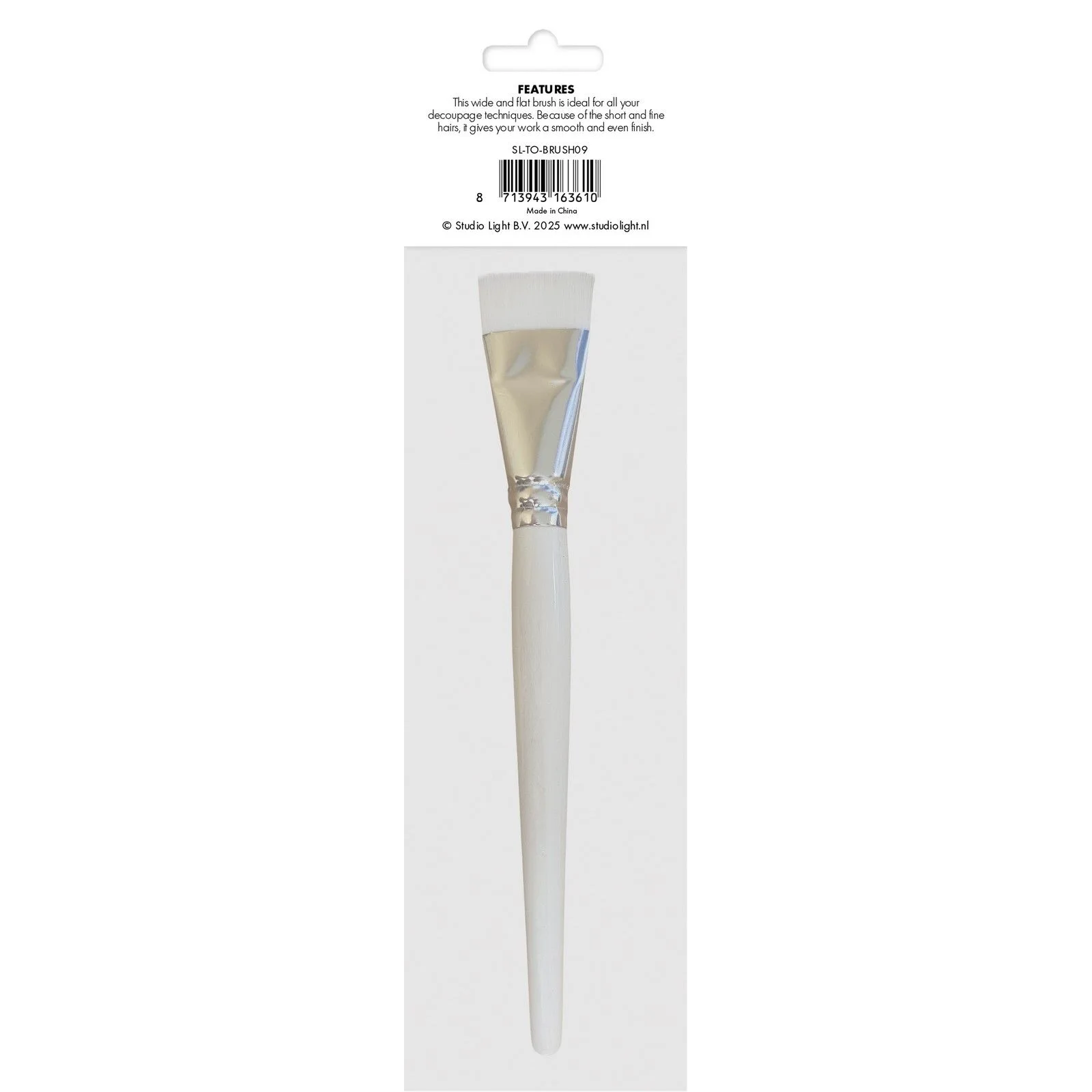 Pędzel płaski z syntetycznym włosiem ze złotego nylonu - przeznaczony do różnych technik craftowych. Są one bardzo miękkie i delikatne, co stanowi o ich uniwersalności. Dlatego świetnie nadają się do wielu mediów - farb kredowych, akrylowych, olejnych, do rozprowadzania werniksu czy kleju w technice decoupage, a także do szerokich zastosowań amatorskich. Włosie jest bardzo delikatne dzięki czemu nie pozostawia smug. Ze względu na ich miękkość może być ciężko pracować z gęstymi mediami. Trzonek drewniany, lakierowany. Skuwka metalowa.