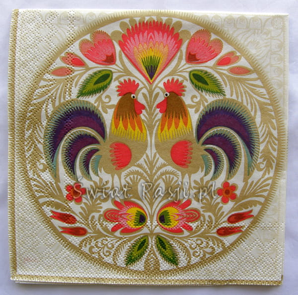 serwetka - wycinanki łowickie (kogutki)