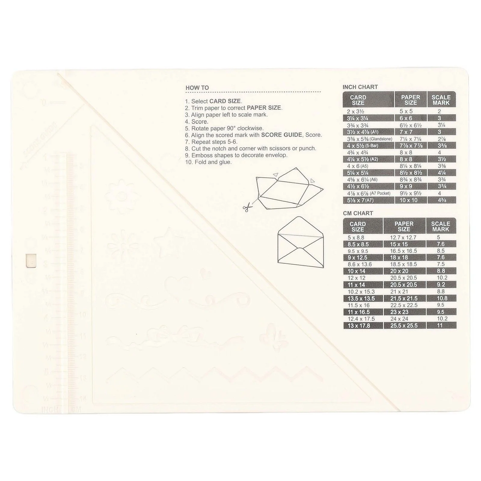 Doskonałe narzędzie, dzięki któremu w łatwy i szybki sposób stworzysz równe i profesjonalne linie zagięć podczas tworzenia kartek okolicznościowych i zaproszeń oraz piękne koperty w różnych rozmiarach.