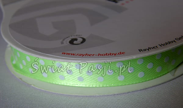 wstążka w groszki - limonkowa 10mm (rolka 10m)