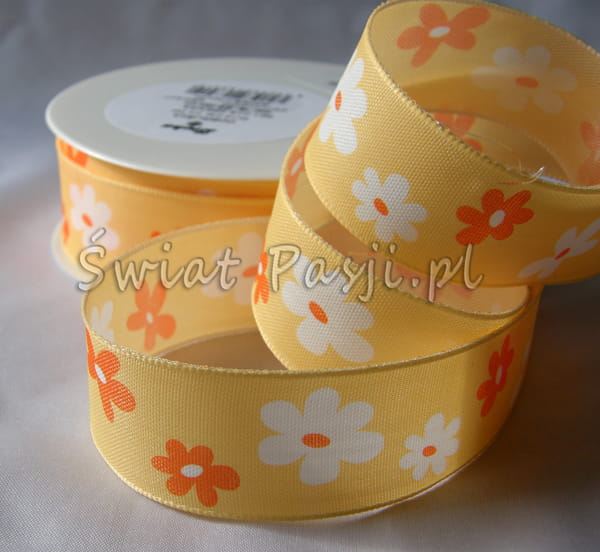 wstążka w kwiatki - pomarańczowa