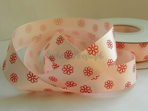 wstążka w kwiaty ażurowe - jasno różowa (22mm)