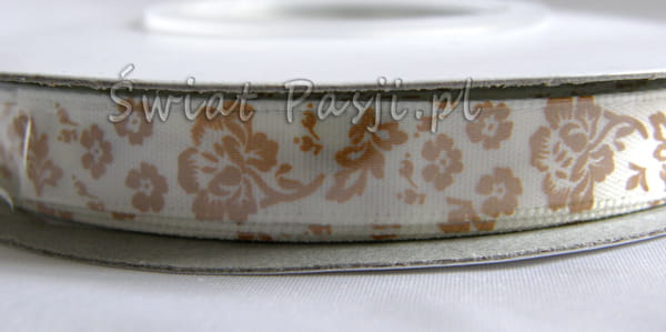 wstążka we wzór kwiatowy - migdałowa (10mm)