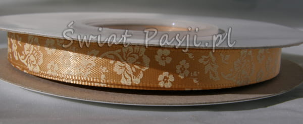 wstążka we wzór kwiatowy - złota (10mm)