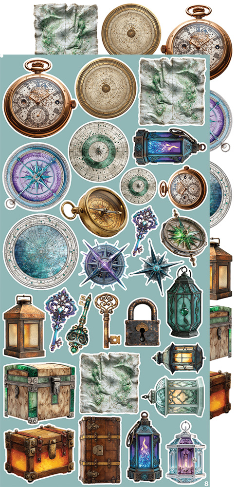 Zestaw 18 arkuszy wysokiej jakości dwustronnego papieru do scrapbookingu z dodatkami do samodzielnego wycięcia.