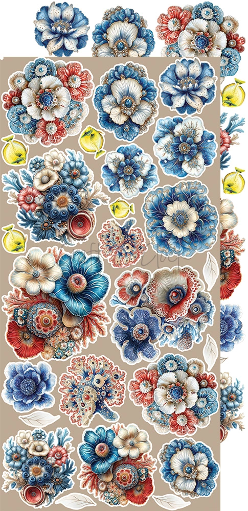 Zestaw 18 arkuszy wysokiej jakości dwustronnego papieru do scrapbookingu z dodatkami do samodzielnego wycięcia.