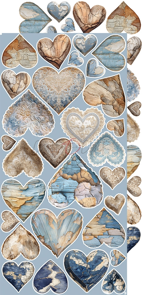 Zestaw 18 arkuszy wysokiej jakości dwustronnego papieru do scrapbookingu z dodatkami do samodzielnego wycięcia. 3x6 wzorów + dodatkowe elementy (ramki) do wycięcia na odwrocie strony tytułowej.