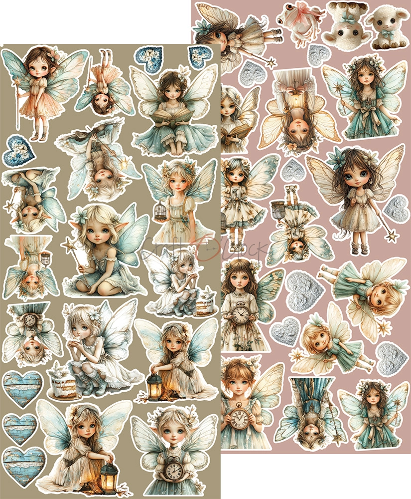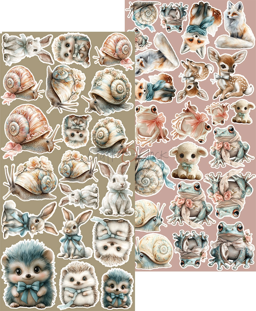 Zestaw 18 arkuszy wysokiej jakości dwustronnego papieru do scrapbookingu z dodatkami do samodzielnego wycięcia. 3x6 wzorów + dodatkowe elementy (ramki) do wycięcia na odwrocie strony tytułowej.